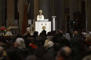 យើងបានស្តាប់ព្រះនាងម៉ារី ដែលបានលើកតម្កើងសិរីរុងរឿងរបស់ព្រះជាម្ចាស់ “ព្រលឹងខ្ញុំសូមលើកតម្កើងព្រះអម្ចាស់ ខ្ញុំមានចិត្តអំណរយ៉ាងខ្លាំង ព្រោះព្រះជាម្ចាស់ជាព្រះសង្រ្គោះរបស់ខ្ញុំ ព្រះអង្គទតមើលទុក្ខវេទនានៃអ្នកបម្រើរបស់ព្រះអង្គ”។ ឱ្យពាក្យអធិដ្ឋានរបស់ព្រះនាងម៉ារី ទៅជាពាក្យអធិដ្ឋានរបស់យើងសម្រាប់ជីវិតយើង សម្រាប់ព្រះសហគមន៍យើង សម្រាប់ពិភពលោកយើង។ ដោយដឹងថា ព្រះនាងម៉ារីទៅជាសាវ័កមុនគេបង្អស់ ព្រះនាងម៉ារីទៅជាគ្រីស្តទូតមុនគេបង្អស់ ដោយសារព្រះនាងម៉ារីបានអធិដ្ឋានជានិច្ច។