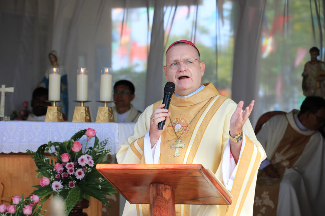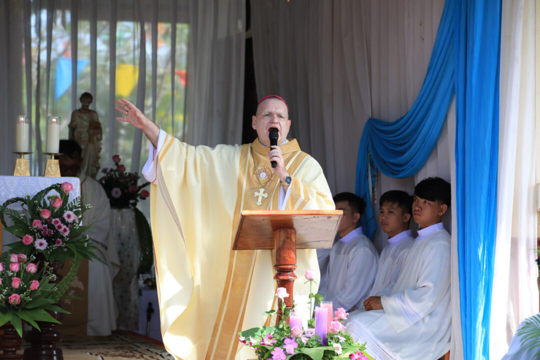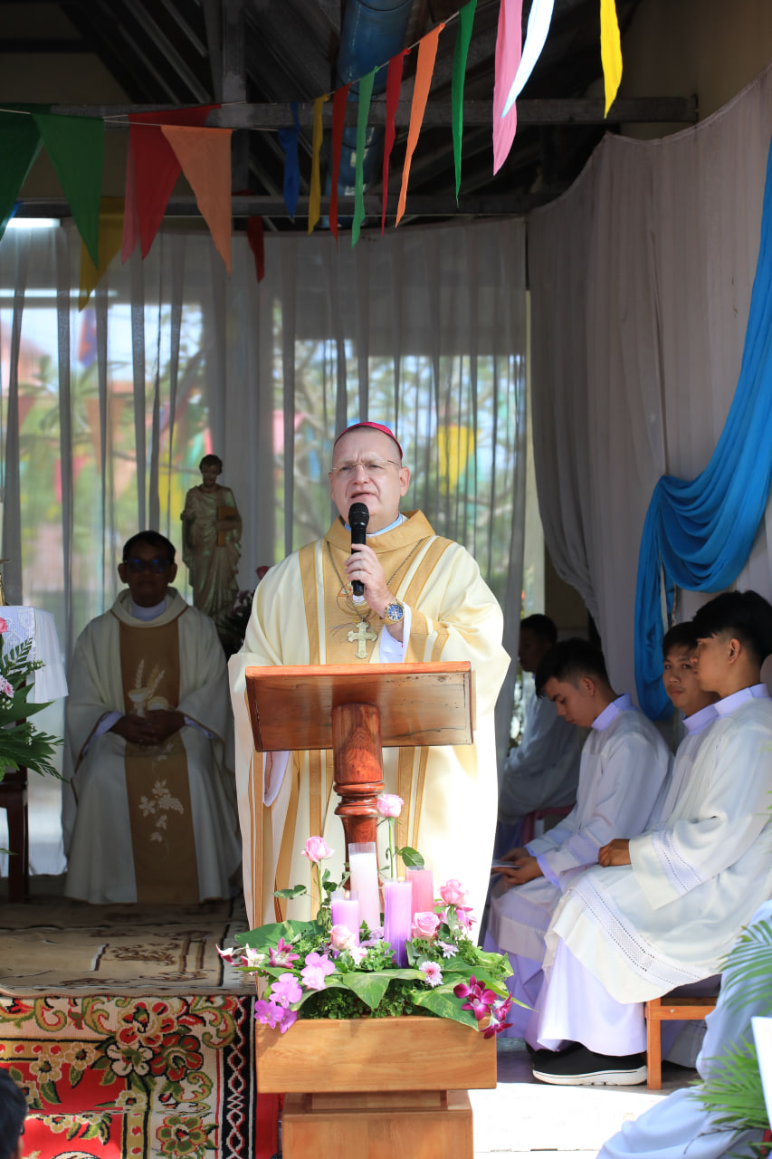 ក្នុងបរិបទសង្គ្រាមរវាងកម្ពុជានិងថៃ លោកអភិបាល អូលីវីយ៉េបានជំរុញអោយគ្រីស្តបរិស័ទ អធិដ្ឋាន និងបន្តសកម្មភាពមេត្តាករុណា។ លោកថា យើងជាគ្រីស្តបរិស័ទ យើងមានអំណាចមួយគឺអធិដ្ឋាន។ អធិដ្ឋានដើម្បីអោយសុខសន្តិភាពយាងមក «មិនថ្ងៃស្អែក មិនខាងស្អែក តែថ្ងៃនេះ»។ យើងអធិដ្ឋានជាមួយព្រះនាងម៉ារី ដែលជាក្សត្រីនៃសន្តិភាព «ដើម្បីបិទសំឡេងអាវុធ»។ លោកបន្ថែមថា «សង្គ្រាម គឺបំផ្លាញ មិនរកឃើញអ្វីទេ បំផ្លាញអ្វីទាំងអស់ ជីវិត អាគារ សមទ្ធផល និងសន្តិភាព ដែលយើងខិតខំកសាងច្រើនឆ្នាំ។» លោកអភិបាលបានជំរុញ អោយមានសាមគ្គីភាព រវាងបងប្អូនគ្រីស្តបរិស័ទជាជាមួយបងប្អូនឯទៀតៗ យើងត្រូវចូលរួមសហការ មានចិត្តសាមគ្គី ព្រោះយើងជាប្រជាជនតែមួយ ដើម្បីកសាងសន្តិភាព។ «កសាងសន្តិភាព! មានតែសន្តិភាពណែនាំអោយយើងមានសុខដុមរមនា អភិវឌ្ឍន៍ និងមានកម្លាំង ដែលនាំអោយជីវិតរបស់យើងទៅមុខតទៅទៀត» លោកអភិបាលបញ្ជាក់។ ក្នុងកម្មវិធីនេះ ក៏មានវត្តមានរបស់ មន្ទីរធម្មការនិងសាសនា និងអាជ្ញាធរដែនដី រួមនិងភ្ញៀវជាតិនិងអន្តរជាតិយ៉ាងច្រើនកុះករ។ ព្រះសហគមន៍ត្រែងត្រយឹង គឺជាអនុតំបន់ព្រះសហគមន៍ស្ថិតក្នុងមណ្ឌលសកម្មភាពភ្នំពេញថ្មី។ សព្វថ្ងៃព្រះសហគមន៍នេះ មានសកម្មភាពនៅតាមតំបន់ជុំវិញជាមួយកុមារកាយឫទ្ធិ នៅត្រពាំងម្រះ អង្គស្នួល និងនៅភូមិចាន់ទី។