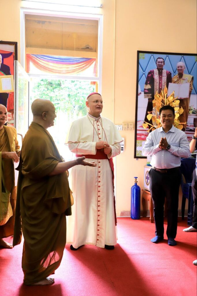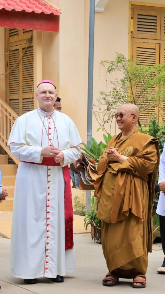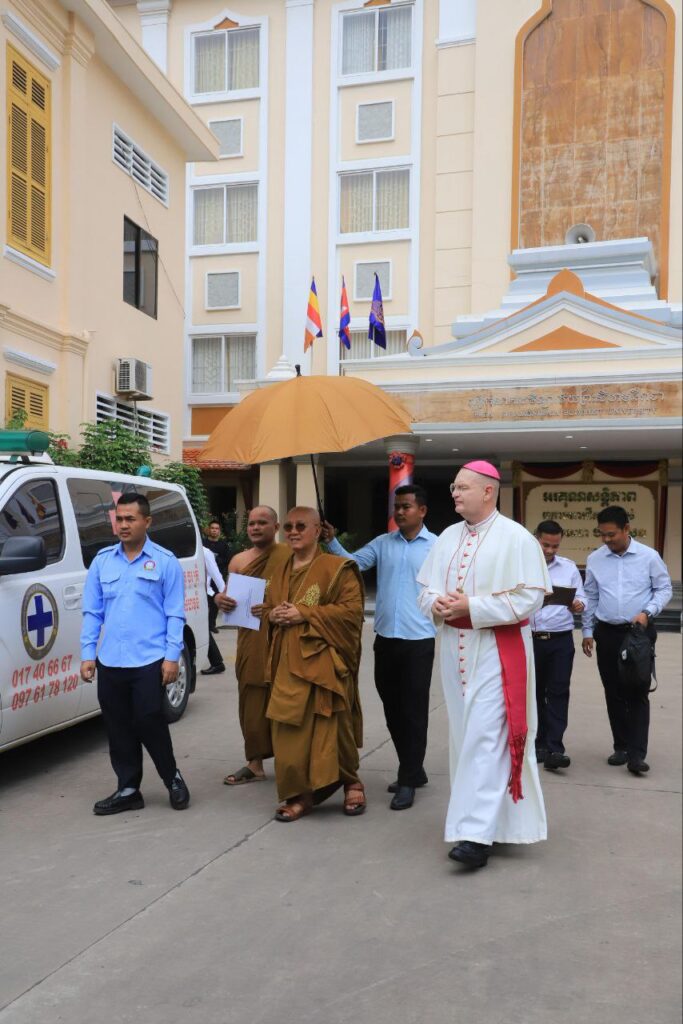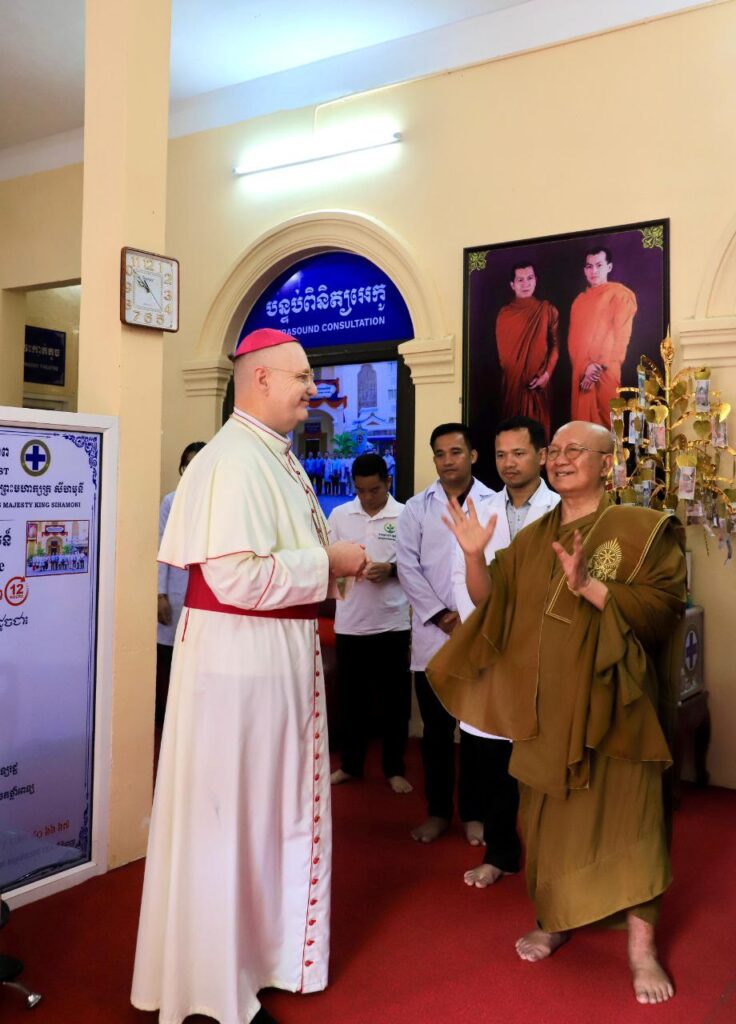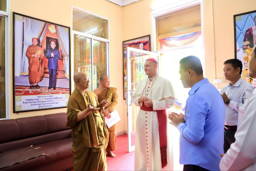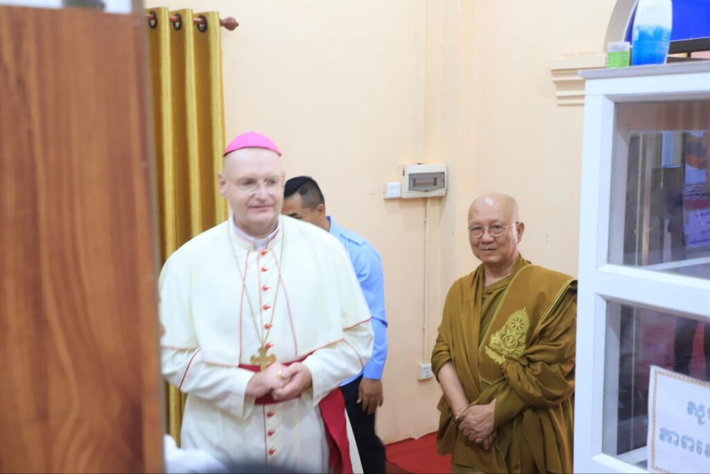ភ្នំពេញ៖ នៅព្រឹកថ្ងៃទី ១៥ ខែសីហា ឆ្នាំ ២០២៥ នេះ លោកអភិបាល អូលីវីយ៉េ ជ្មីតហស្លេ អភិបាលព្រះសហគមន៍កាតូលិកភូមិភាគភ្នំពេញ បានចូលថ្វាយបង្គំគាល់ សម្តេចព្រះអភិសិរីសុគន្ធាមហាសង្ឃរាជាធិបតី កិត្តិឧទ្ទេសបណ្ឌិត បួរ គ្រី សម្តេចព្រះមហាសង្ឃរាជ នៃគណៈធម្មយុត្តិកនិកាយនៃព្រះរាជាណាចក្រកម្ពុជា នៅពុទ្ធិកសាកលវិទ្យាល័យព្រះសីហមុនីរាជា រាជធានីភ្នំពេញ។ គោលបំណងនៃការចូលគាល់នេះ គឺដើម្បីអារាធនាយាងសម្តេចចូលរួមជា អធិបតីកិត្តិយស ក្នុងពិធីបុណ្យអគ្គសញ្ញាតែងតាំងលោកអភិបាល សិលា សួន ហង្សលី ជាអភិបាលឧបត្ថម្ភកៈនៃព្រះសហគមន៍កាតូលិកភូមិភាគភ្នំពេញ។ នៅក្នុងឱកាសនោះ លោកអភិបាល អូលីវីយ៉េ បានទូលថ្វាយសម្តេចថា ថ្មីៗនេះ សម្តេចប៉ាប ឡេអូ ១៤ (Leo XIV) បានជ្រើសតាំងកូនខ្មែរមួយរូបជាអភិបាលឧបត្ថម្ភកៈ ដែលនឹងអាចបន្តភារកិច្ចជាអភិបាលព្រះសហគមន៍កាតូលិកភូមិភាគភ្នំពេញ នៅពេលលោកចូលនិវត្តន៍។ លោកអភិបាលអូលីវីយ៉េក៏បានរំលឹកពីប្រវត្តិសាស្ត្រសំខាន់ថា ព្រឹត្តិការណ៍នេះកើតឡើង ៥០ ឆ្នាំបន្ទាប់ពីសម្តេចប៉ាបបានតែងតាំង លោកយ៉ូសែប ឆ្មារ សាឡាស់ ជាអភិបាលឧបត្ថម្ភកៈព្រះសហគមន៍ភូមិភាគភ្នំពេញ តែប៉ុន្មានថ្ងៃមុនរបបខ្មែរក្រហមកាន់កាប់រាជធានីភ្នំពេញ និងប្រទេសកម្ពុជាទាំងមូល។ គួរឲ្យសោកស្តាយ លោកអភិបាលយ៉ូសែប ឆ្មារ សាឡាស់ ត្រូវបានជម្លៀសទៅដល់ស្រុកតាំងគោក ហើយត្រូវបង្ខំឱ្យធ្វើការធ្ងន់ រហូតទទួលមរណភាពក្នុងឆ្នាំ១៩៧៧។ ជាមួយគ្នានេះ លោកអភិបាល អូលីវីយ៉េ ក៏បានលើកឡើងពីទំនាក់ទំនងដ៏ល្អរវាងព្រះពុទ្ធសាសនា និងព្រះសហគមន៍កាតូលិក ដែលបានរស់នៅជាមួយគ្នាប្រកបដោយភាពសុខដុមរមនា។ ជាក់ស្តែងកាលពីខែឧសភា ឆ្នាំ២០២៥ កន្លងទៅ បានប្រារព្ធកិច្ចសន្ទនាអន្តរសាសនាអន្តរជាតិ លើកទី៨ រវាងព្រះពុទ្ធសាសនា និងគ្រីស្តសាសនា។ លោកក៏បានទូលថ្វាយសម្តេចព្រះមហាសង្ឃរាជ អំពីការអធិដ្ឋាន រួមគ្នា សម្រាប់វិញ្ញាណក្ខន្ធ វីរៈកងទ័ពកម្ពុជាដែលពលី និងសុំសន្តិភាពនៅតាមព្រំដែនកម្ពុជា-ថៃ ផងដែរ។ ពិធីបុណ្យអគ្គសញ្ញាតែងតាំងលោកអភិបាល សិលា សួន ហង្សលី នឹងប្រព្រឹត្តទៅនៅថ្ងៃទី ៦ ខែកញ្ញា ឆ្នាំ ២០២៥ នៅមជ្ឈមណ្ឌលសកម្មភាពព្រះសហគមន៍កាតូលិកភូមិភាគភ្នំពេញ(ភ្នំពេញថ្មី)។ ការយាង សម្តេច ព្រះមហាសង្ឃរាជចូលរួមជាអធិបតីកិត្តិយស បង្ហាញពីការទទួលស្គាល់តួនាទីដ៏សំខាន់របស់ព្រះពុទ្ធសាសនាដែលជាសាសនារដ្ឋ ក៏ដូចជាការលើកកម្ពស់សាមគ្គីភាព និងការយោគយល់គ្នាទៅវិញទៅមករវាងប្រជាជនកម្ពុជាគ្រប់ជំនឿសាសនា។ ជាការឆ្លើយតប សម្តេចព្រះមហាសង្ឃរាជ បូរ គ្រី បានបង្ហាញព្រះទ័យទទួលស្វាគមន៍យ៉ាងកក់ក្តៅ និងរំលឹកដល់សកម្មភាពល្អៗជាច្រើនដែលព្រះអង្គធ្លាប់មានជាមួយបព្វជិតនៃព្រះសហគមន៍កាតូលិក។ ព