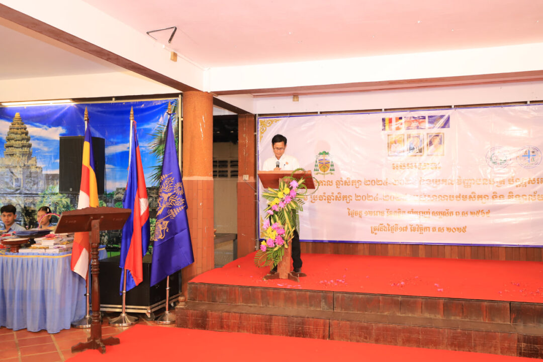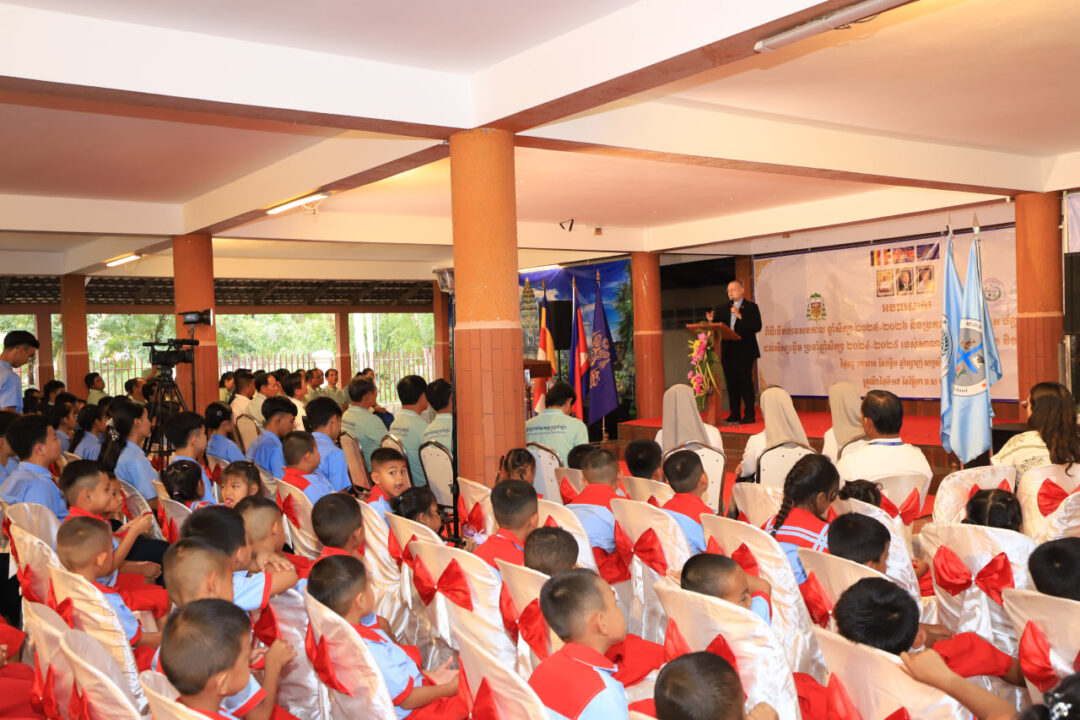 ក្នុងឱកាសដ៏សំខាន់នោះ លោកអភិបាល អូលីវីយ៉េ អភិបាលព្រះសហគមន៍កាតូលិកភូមិភាគភ្នំពេញ និងជាស្ថាបនិកសាលា បានណែនាំគម្រោងការសម្រាប់ឆ្នាំសិក្សាថ្មីនេះ ដោយផ្តោតសំខាន់លើការបណ្តុះបណ្តាលសិស្សានុសិស្សឲ្យក្លាយជា អ្នកកសាងសន្តិភាព។ ដោយយកចិត្តទុកដាក់លើ ការអភិវឌ្ឍការអប់រំ ការរួមរស់ជាមួយគ្នា ការគោរពគ្នា និង ការសន្ទនាគ្នា និងការទទួលស្គាល់ អំពីភាពខុសគ្នារវាងគ្នានិងគ្នា។