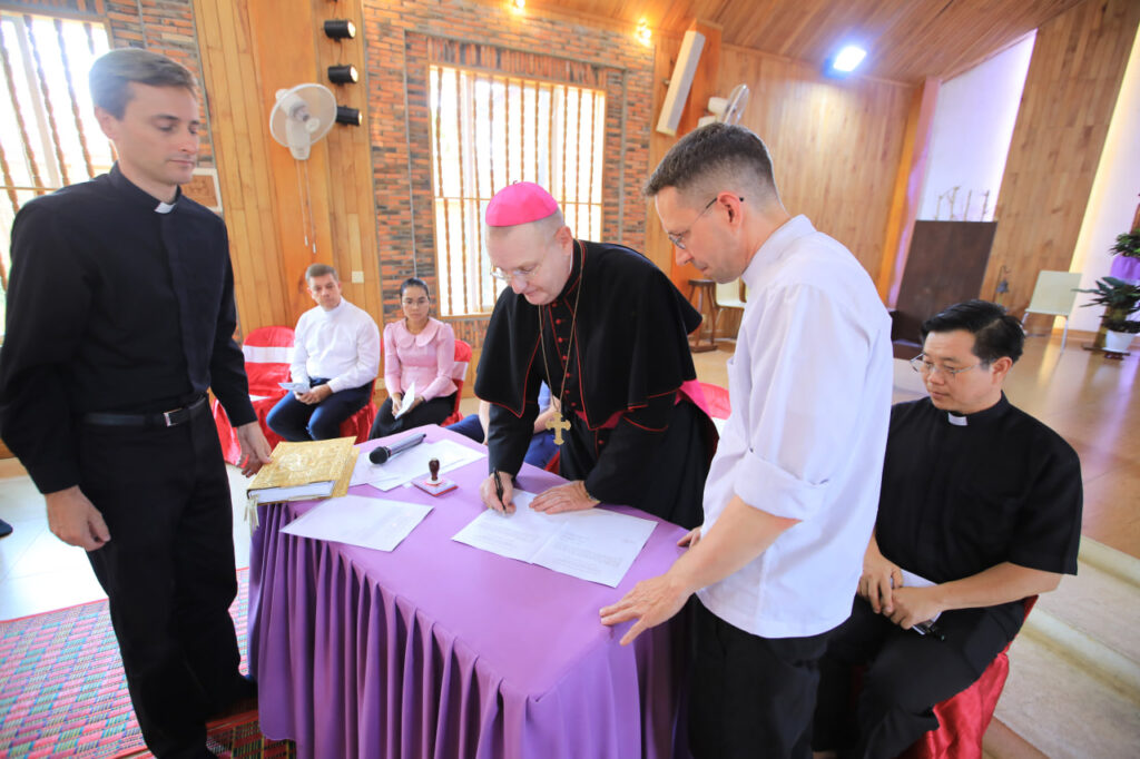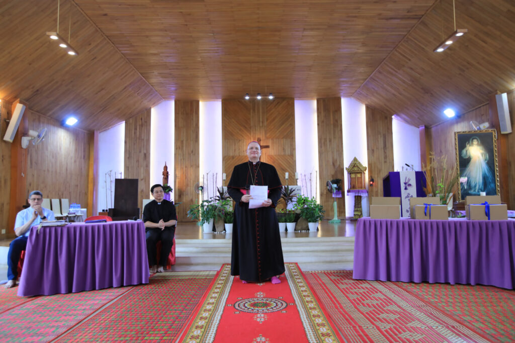 ថ្លែងក្នុងធម្មទេសនាទៅកាន់គ្រីស្តបរិស័ទប្រមាណ៣០០នាក់ ដែលមកពីតំបន់នានាក្នុងភូមិភាគភ្នំពេញ បាត់ដំបង និងកំពង់ចាម នាថ្ងៃទី១៨ ខែមីនាកន្លងទៅនេះ លោកអភិបាល អូលីវីយ៉េ បានមានប្រសាសន៍ថា នេះជាពេលដ៏មានអត្ថន័យបំផុតសម្រាប់សហគមន៍ បន្ទាប់ពីបានខិតខំប្រមូលចងក្រងប្រវត្តិសាស្ត្រនៃសេចក្តីស្រឡាញ់ និងការលះបង់។